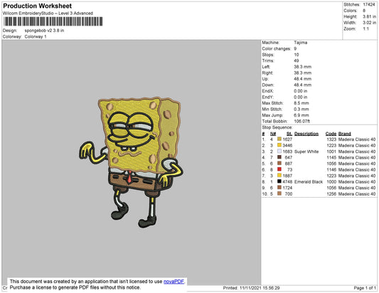 SpongeBob v3 Embroidery Design Files - 4 Size's