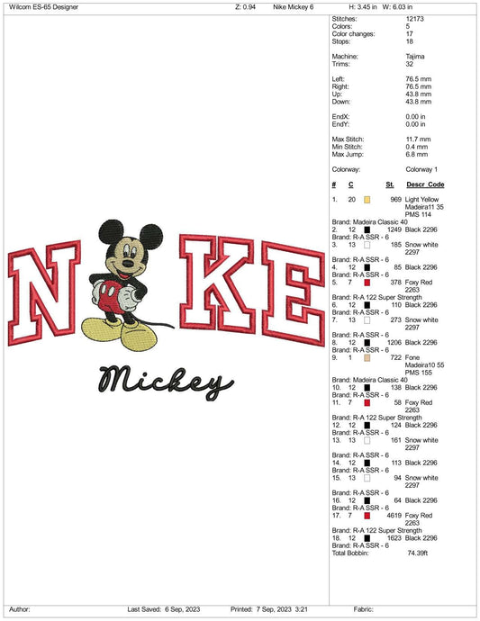 Nike Mickey Mouse Embroidery Design Files - 3 Size's