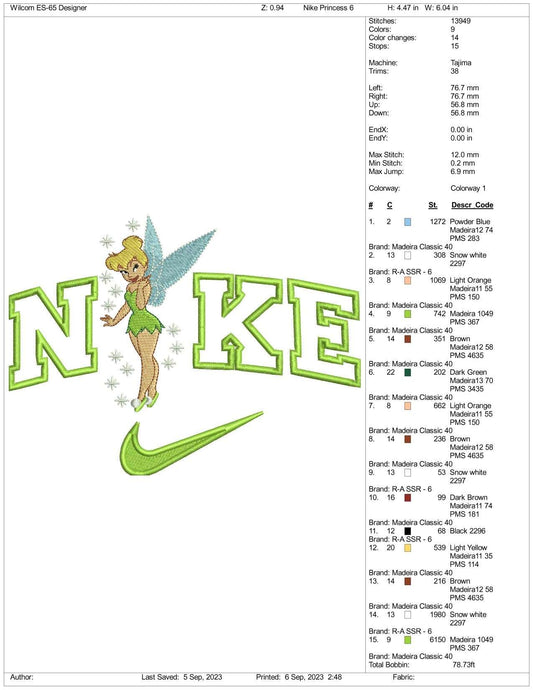 Nike Tinker Bell Embroidery Design Files - 3 Size's