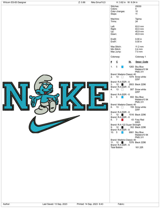 Nike Smurfs Embroidery Design Files - 3 Size's