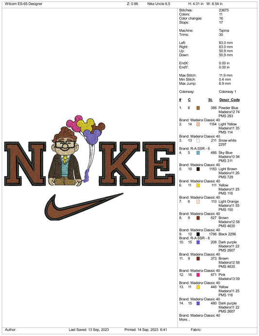 Nike Carl Fredricksen Embroidery Design Files - 3 Size's