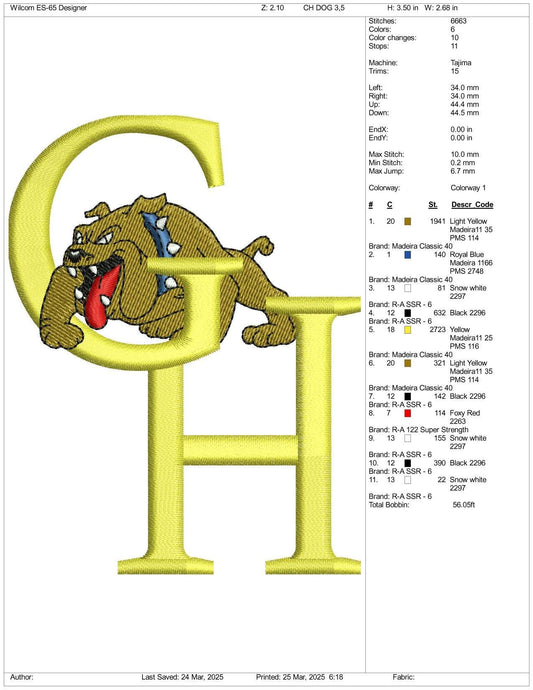 Bull Dog v2 Embroidery Design Files - 3 Size's