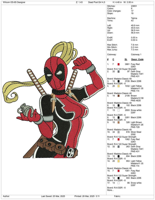 Lady Deadpool Embroidery Design Files - 3 Size's