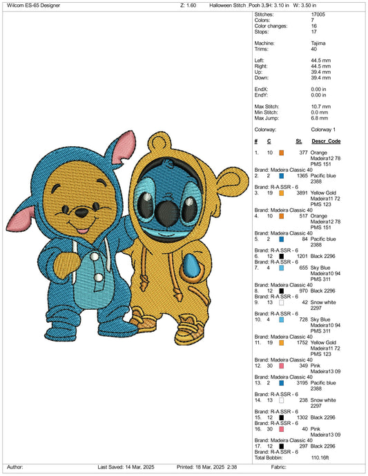 Pooh & Stitch Cosplay Embroidery Files - 3 Size's