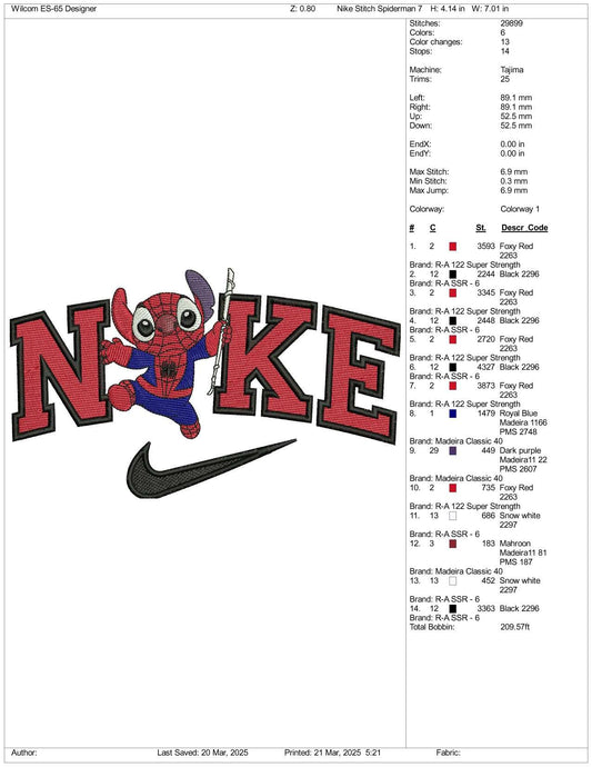 Nike Stitch Cosplay Spider Man Embroidery Files - 3 Size's