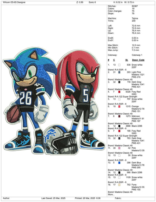 Sonic & Knuckless Embroidery Design Files - 4 Size's