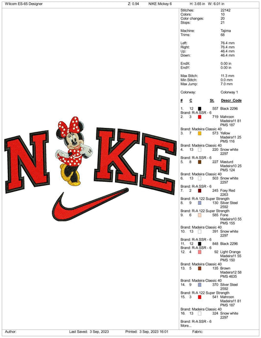 Nike Minnie Mouse Embroidery Design Files - 3 Size's