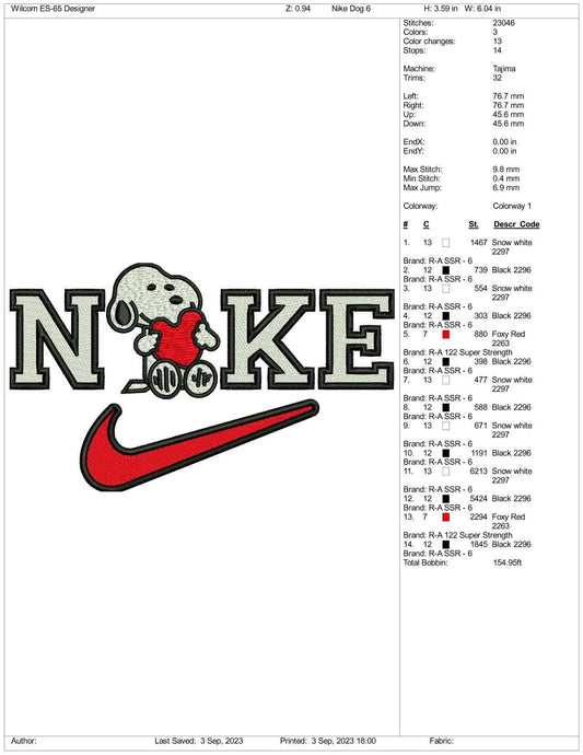 Nike Snoopy Embroidery Design Files - 3 Size's