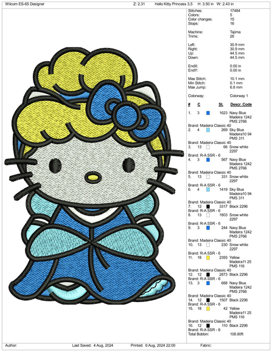 Hello Kitty Princess Embroidery Files - 3 Size's