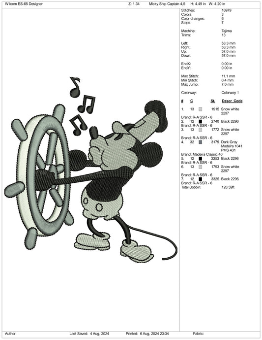 Captain Mickey Mouse Embroidery Files - 3 Size's