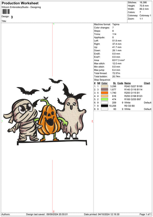 Spooky Pumpkin Family Embroidery Design Files - 5 Size's