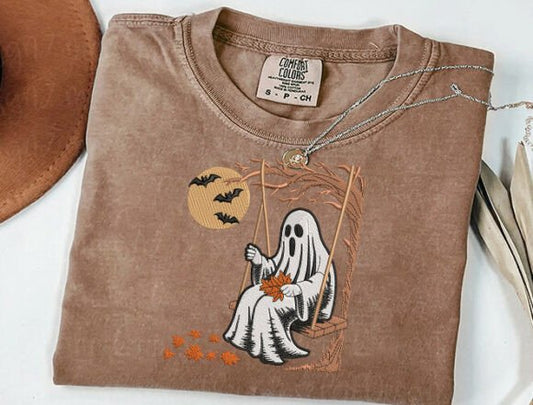 Ghost on Tree Embroidery Design Files - 5 Size's