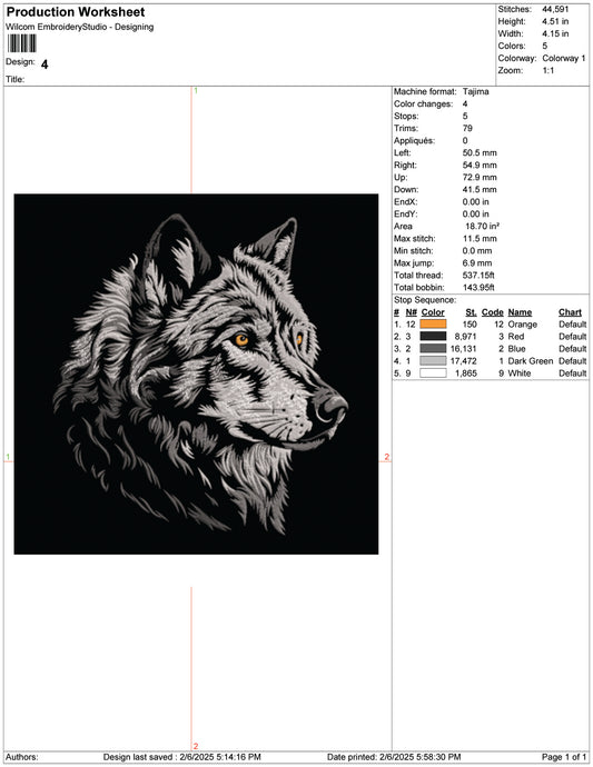 Wolf Head Embroidery Design Files - 9 Size's