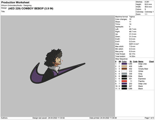 Cowboy Bebop Swoosh v2 Embroidery Design Files - 5 Size's