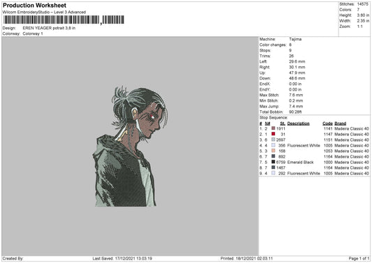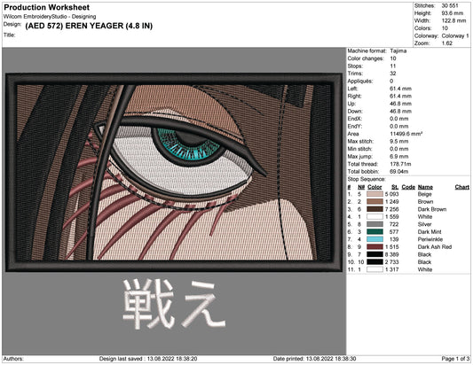 Eren Yeager v9 Embroidery Design Files - 4 Size's
