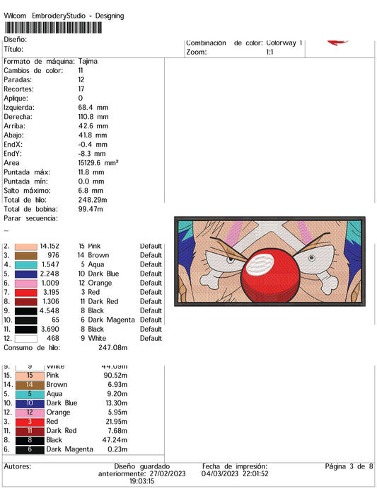 Jotaro Kujo v3 Embroidery Design Files - 4 Sizes