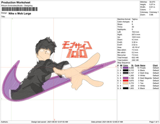 Mob Psycho 100 v2 Embroidery Design Files - 3 Size's