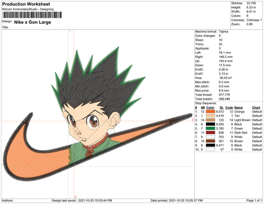 Gon Freecss Swoosh v3 Embroidery Design Files - 3 Size's
