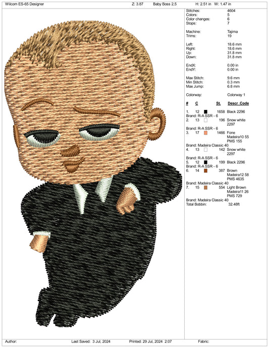 The Boss Baby Embroidery Design Files - 3 Size's