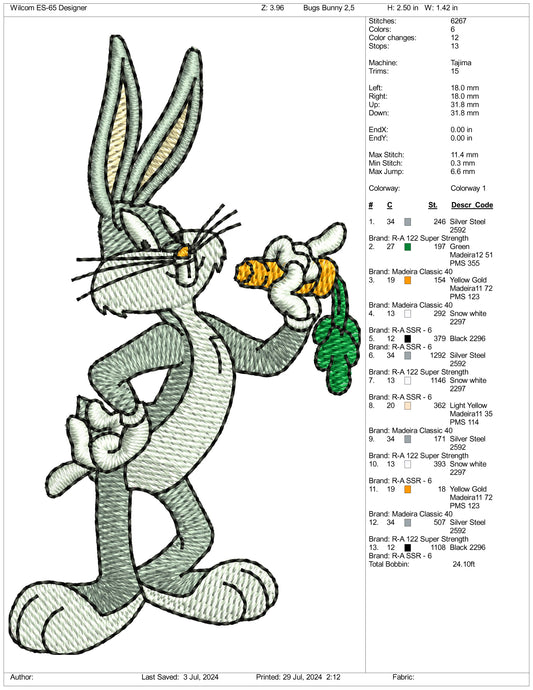 Bugs Bunny Embroidery Design Files - 3 Size's