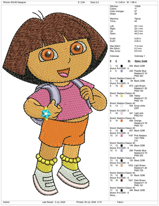 Dora Embroidery Design Files - 3 Size's