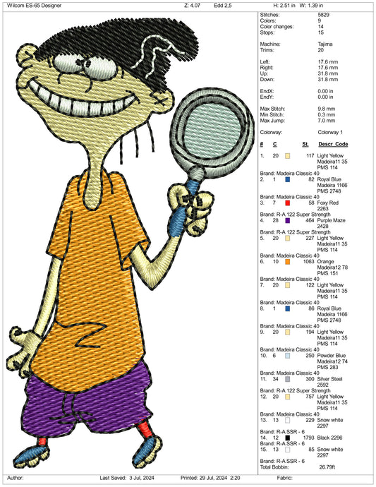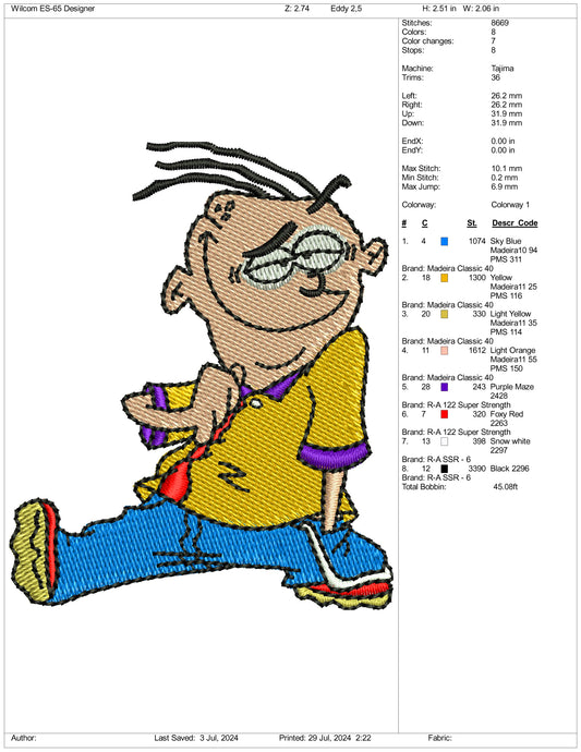 Eddy Embroidery Design Files - 3 Size's