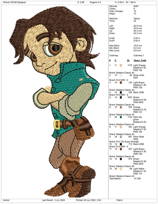 Chibi Flynn Rider Embroidery Design Files - 3 Size's
