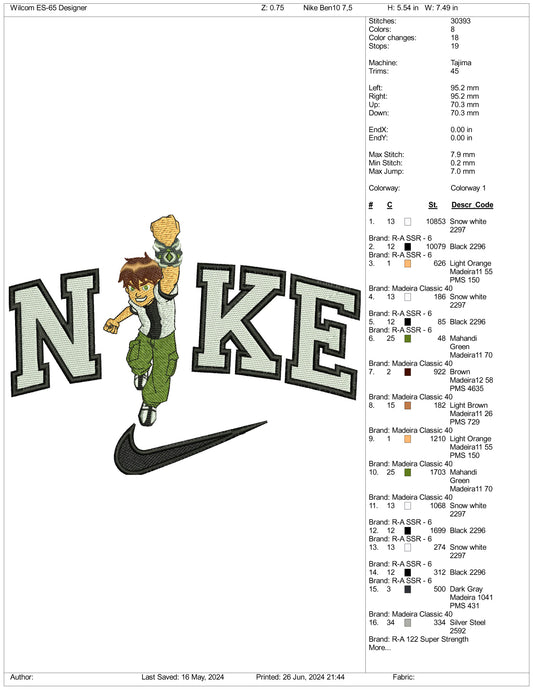 Nike Ben 10 Embroidery Design Files - 3 Sizes