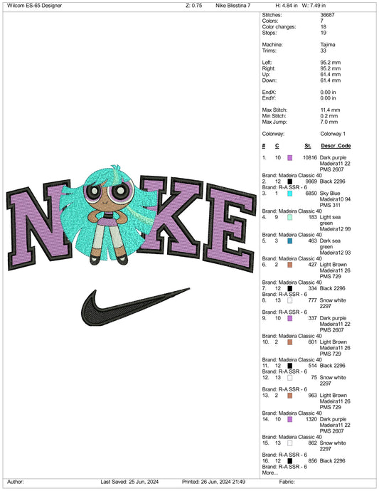 Nike Belle v1 Embroidery Design Files - 3 Size's