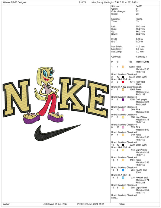 Nike Brandy Harrington Embroidery Design Files - 3 Sizes