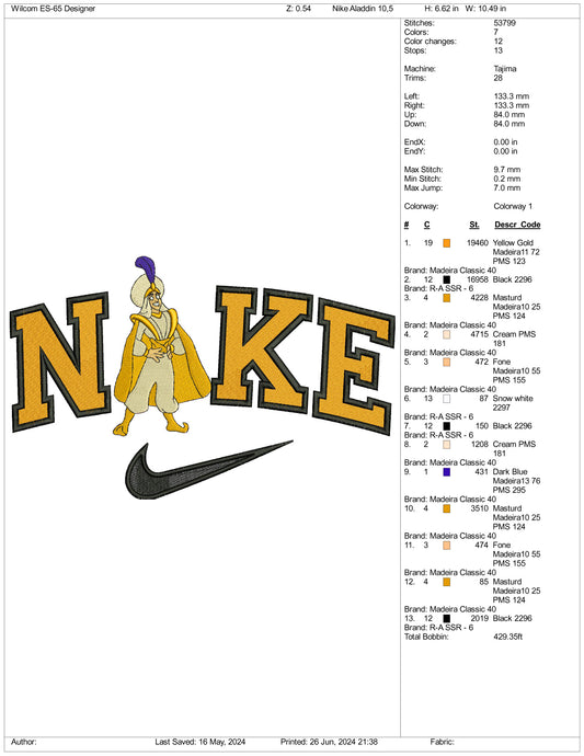Nike Aladdin v2 Embroidery Design Files - 3 Size's