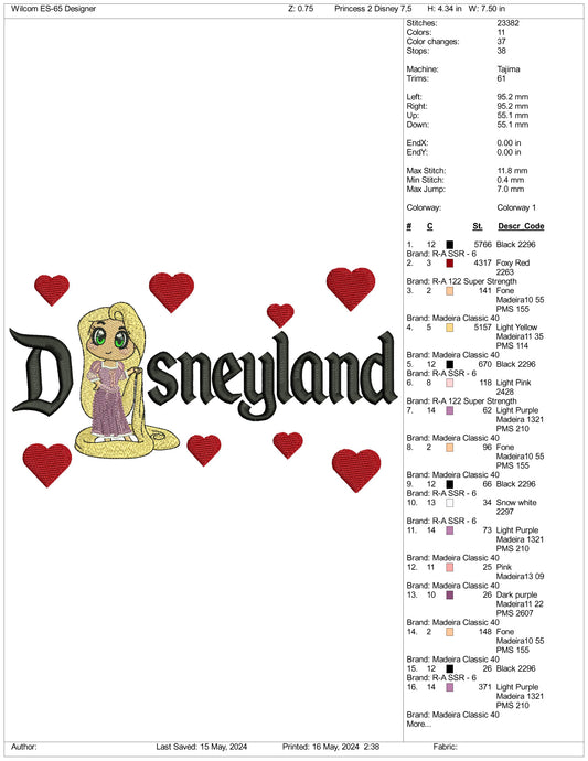 Rapunzel v2 Disneyland Embroidery Design Files - 3 Sizes