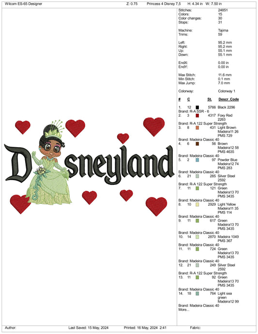 Chibi Princess Tiana Disneyland Embroidery Design Files - 3 Size's