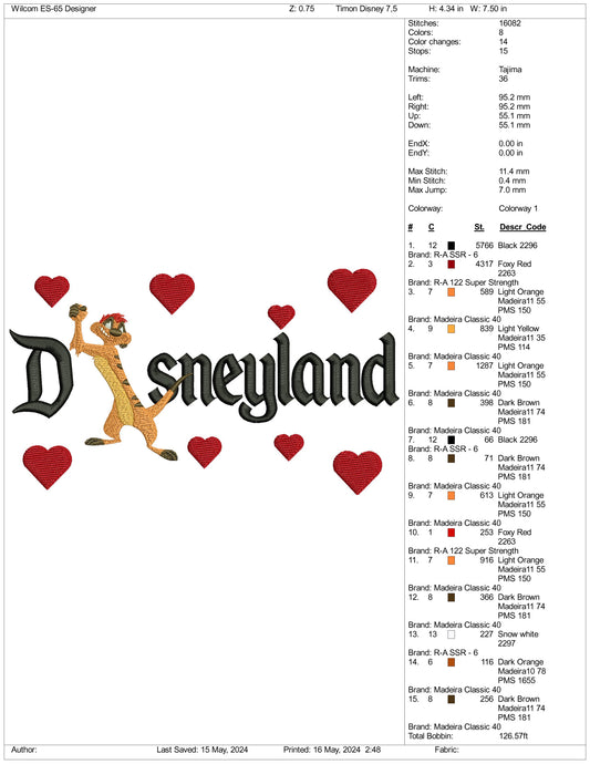 Timon Disneyland Embroidery Design Files - 3 Size's