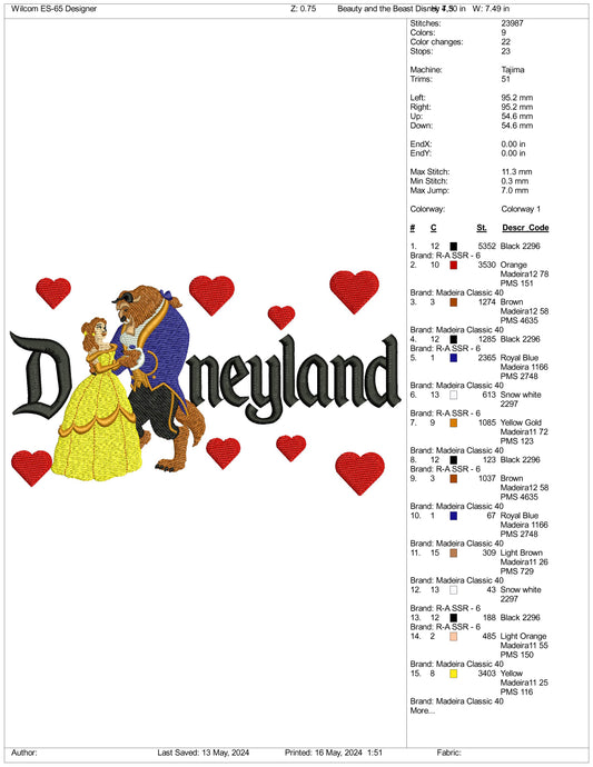 Beauty and The Beast Disneyland Embroidery Design Files - 3 Size's