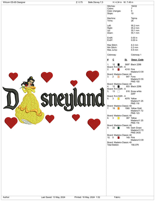 Belle v1 Disneyland Embroidery Design Files - 3 Size's