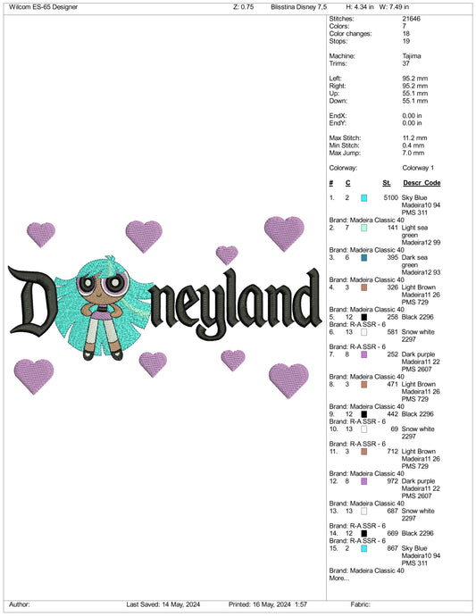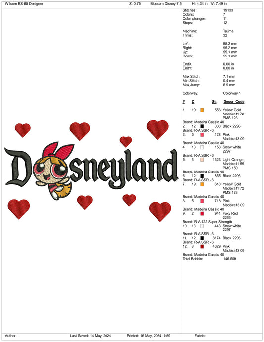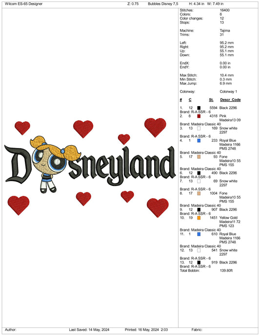 Bliss Disneyland Embroidery Design Files - 3 Sizes