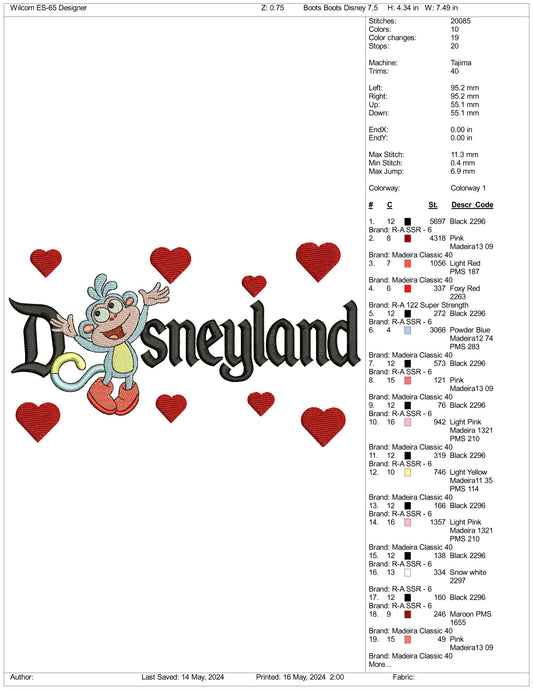 Boots v1 Disneyland Embroidery Design Files - 3 Sizes