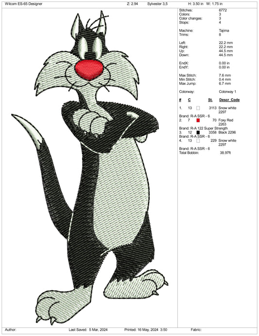 Baby Sylvester Embroidery Design Files - 3 Size's