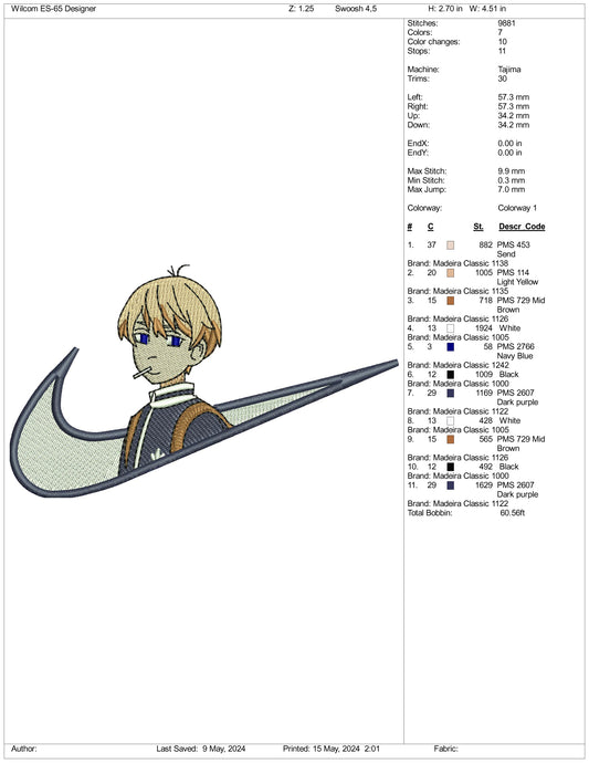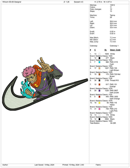 Yuji Itadori Swoosh Embroidery Design Files - 3 Sizes