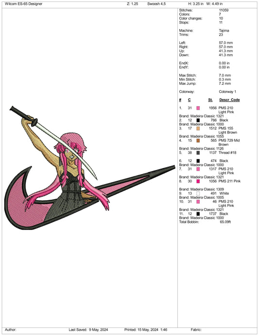 Yuno Gasai Swoosh Embroidery Design Files - 3 Sizes