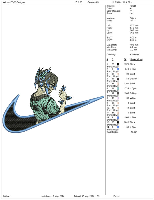 Shinobu Kocho Swoosh Embroidery Design Files - 3 Sizes