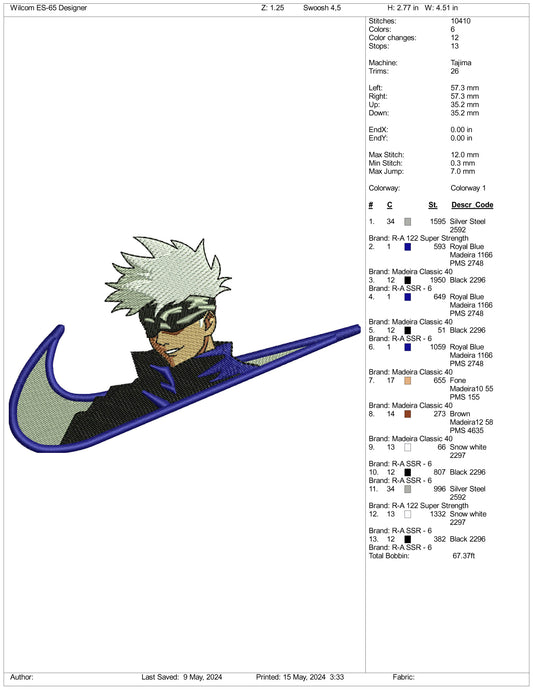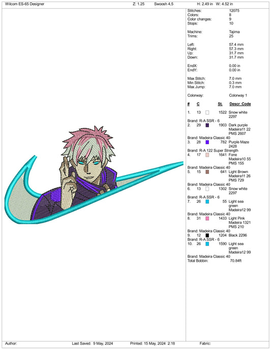 Satoru Gojo Swoosh Embroidery Design Files - 3 Sizes