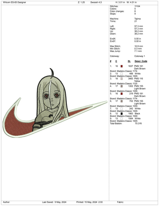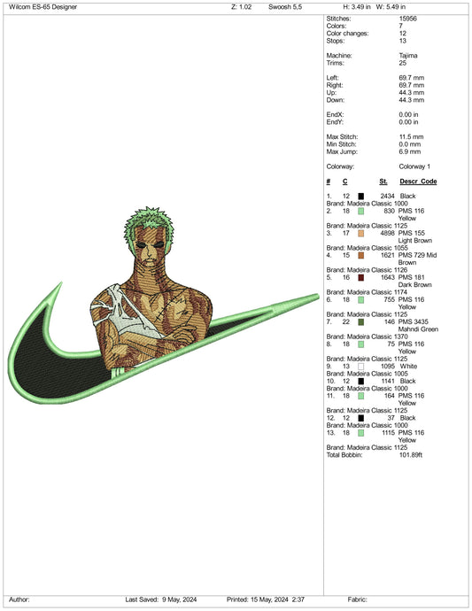 Roronoa Zoro Swoosh Embroidery Design Files - 3 Sizes