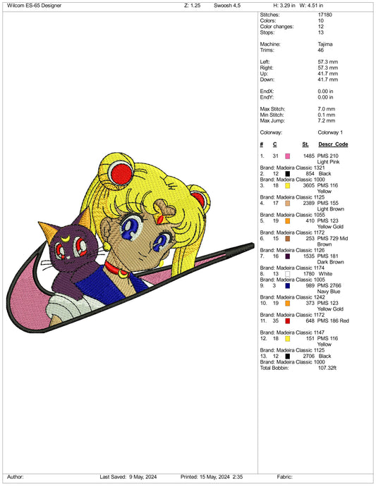 Sailor Moon Swoosh Embroidery Design Files - 3 Sizes