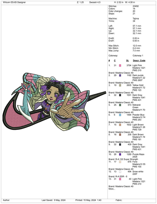 Shinobu Kocho Swoosh v2 Embroidery Design Files - 3 Sizes