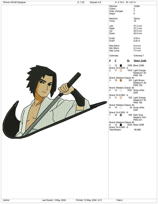 Sasuke Uchiha Swoosh Embroidery Design Files - 3 Sizes