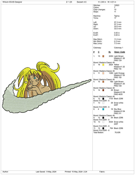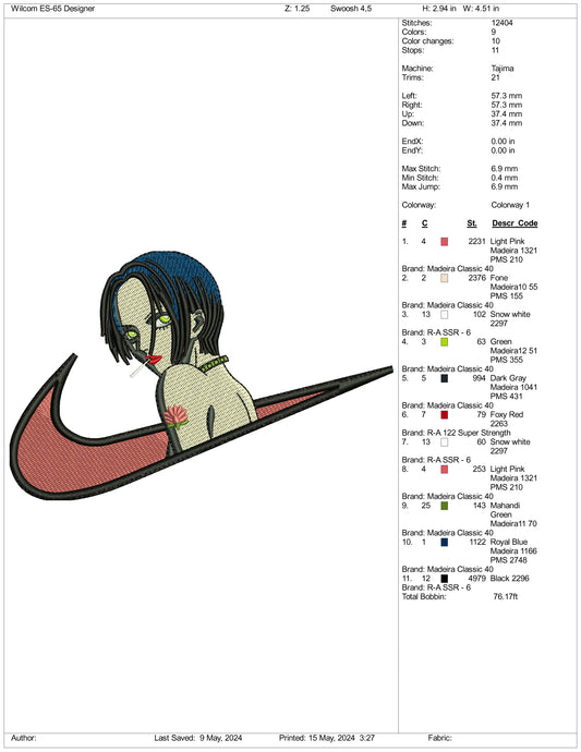 Nana Osaki Swoosh Embroidery Design Files - 3 Sizes
