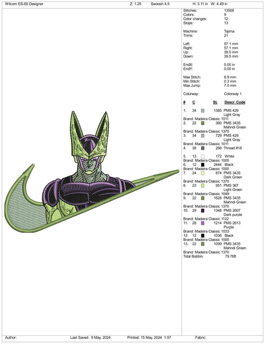 Perfect Cell Swoosh Embroidery Design Files - 3 Sizes