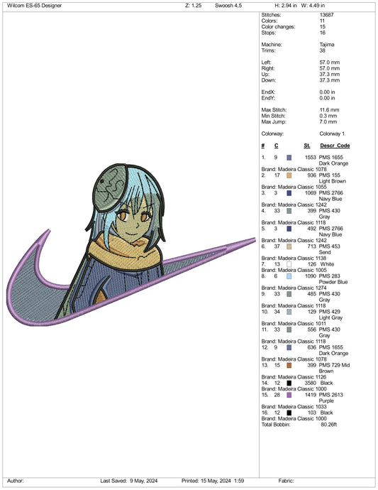 Rimuru Tempest Swoosh Embroidery Design Files - 3 Sizes